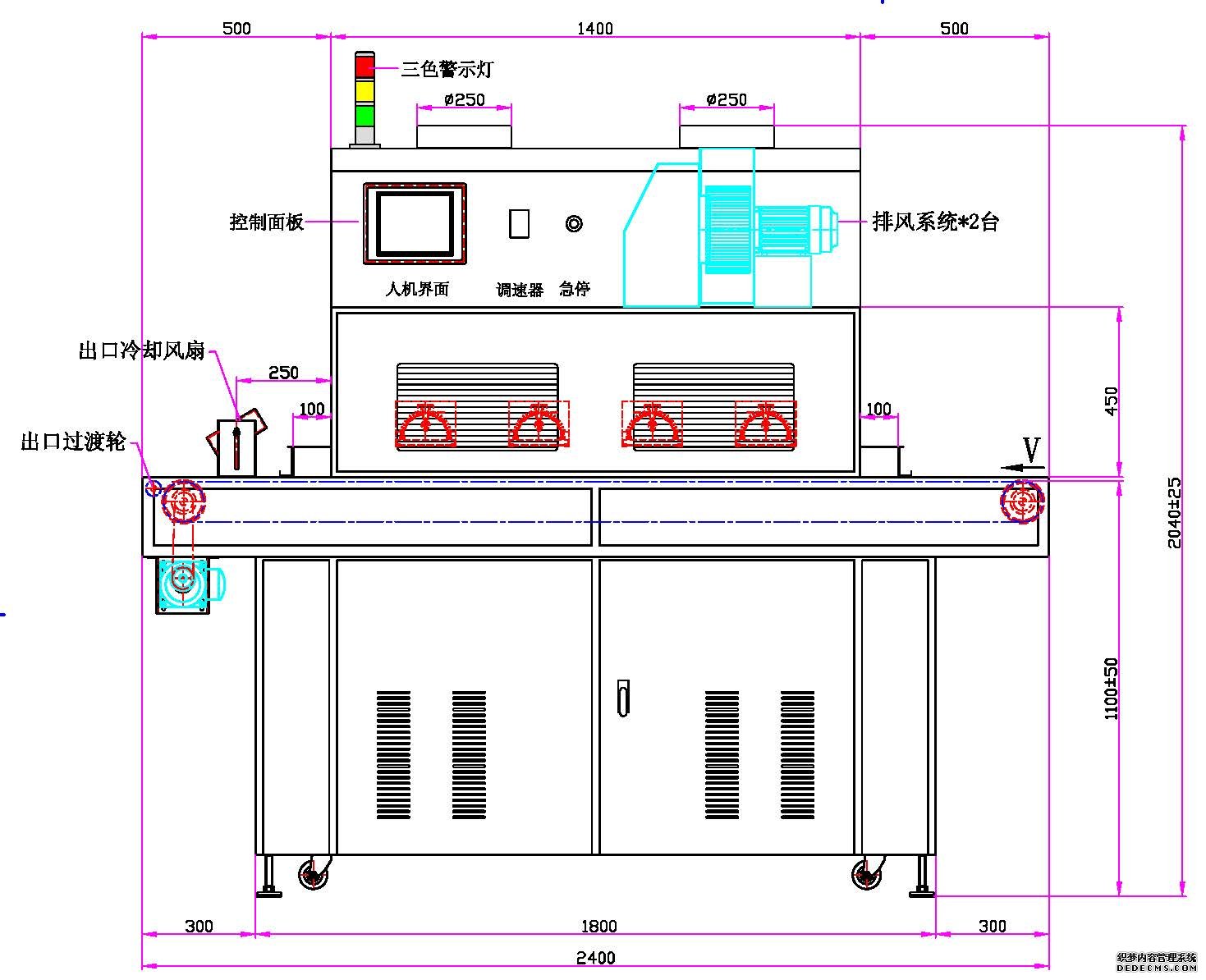 1、UV燈功率:8.0kw*4支(UV鹵素燈)